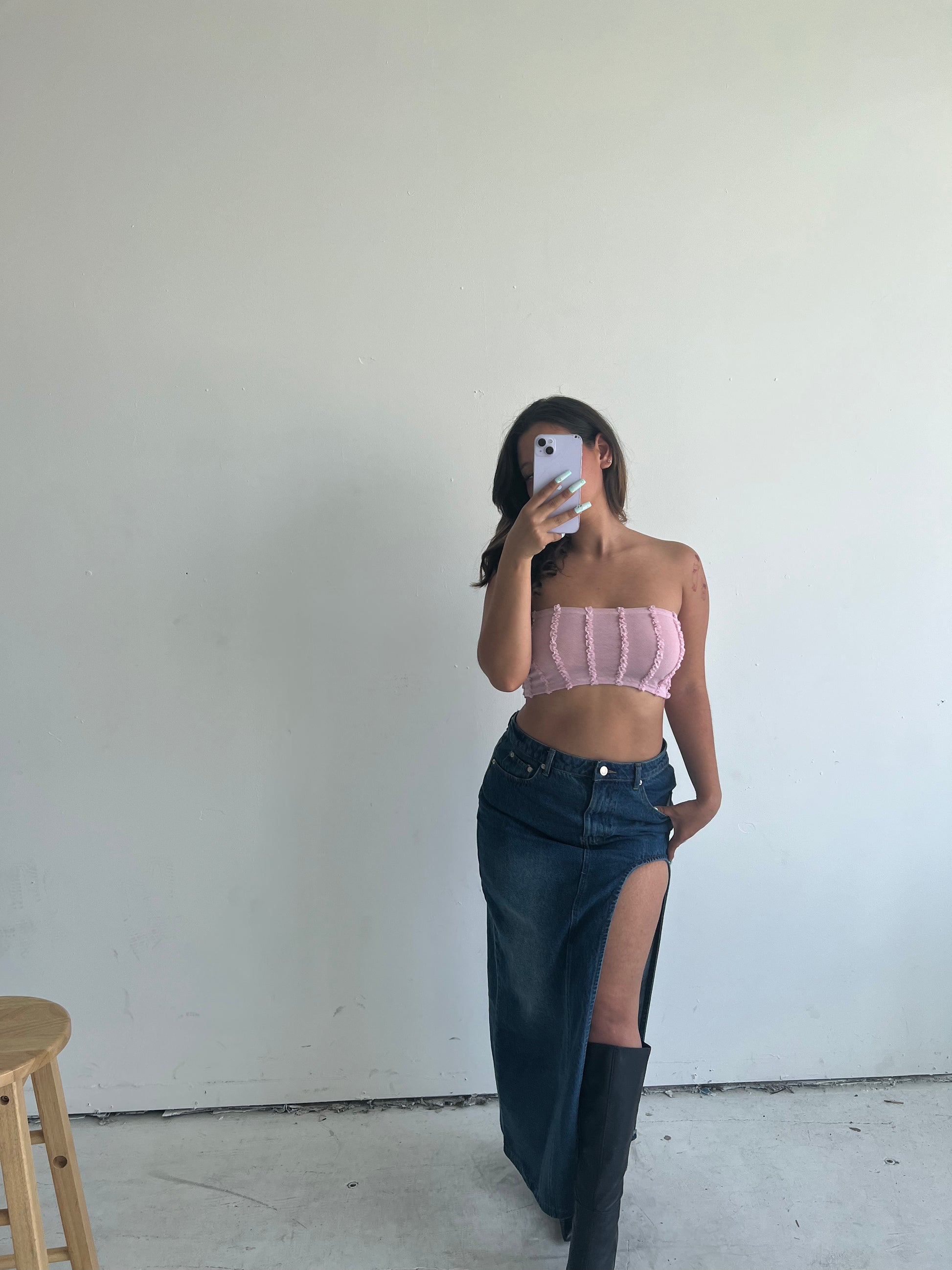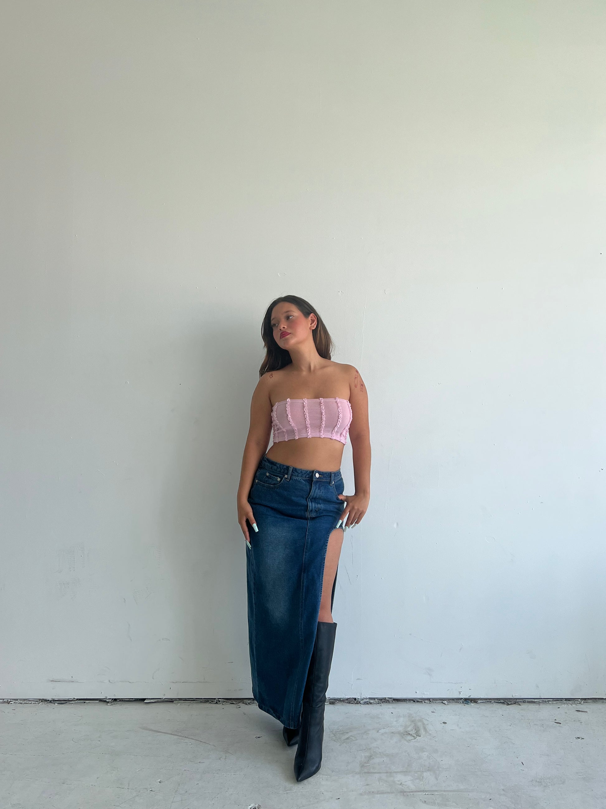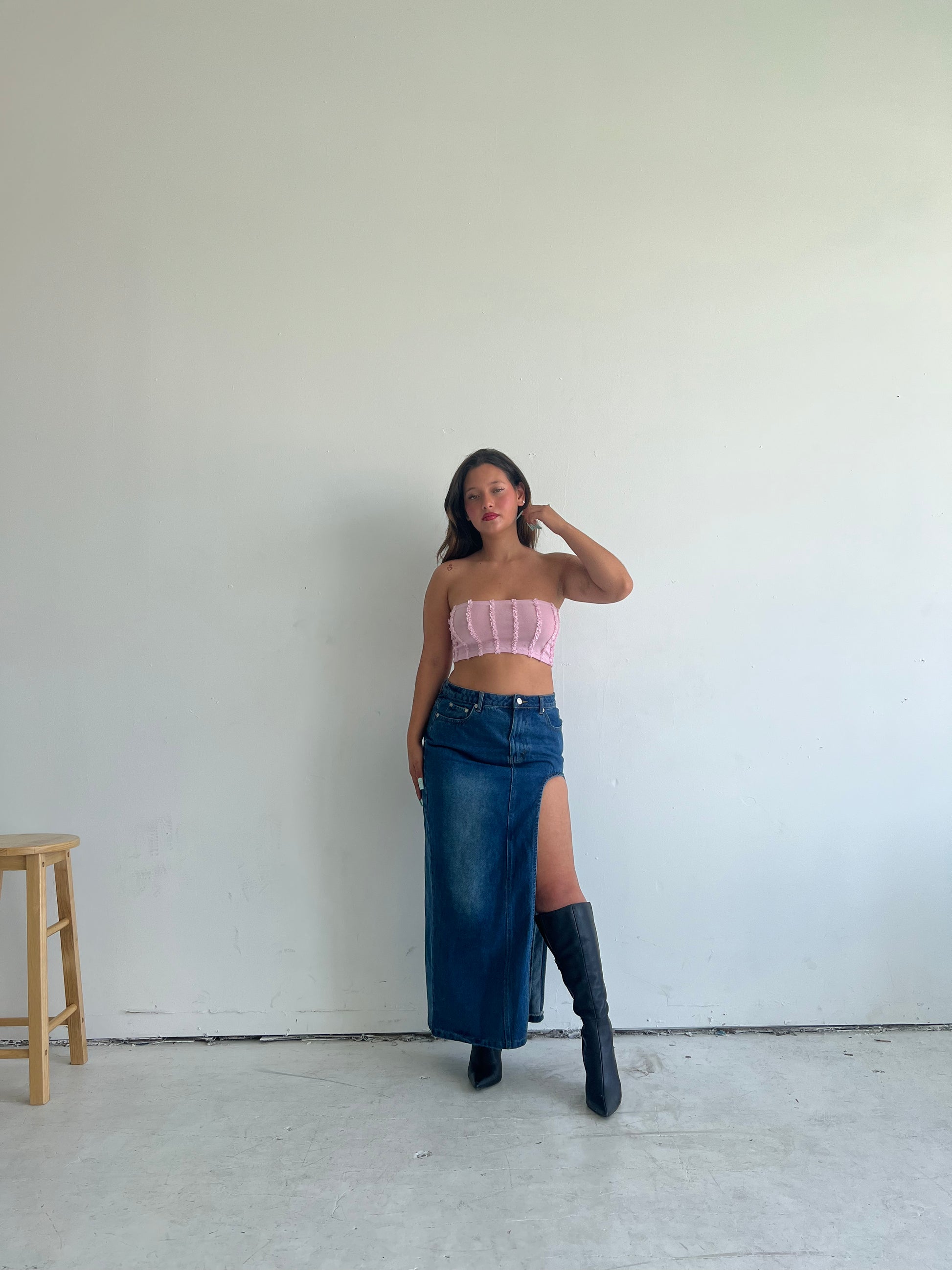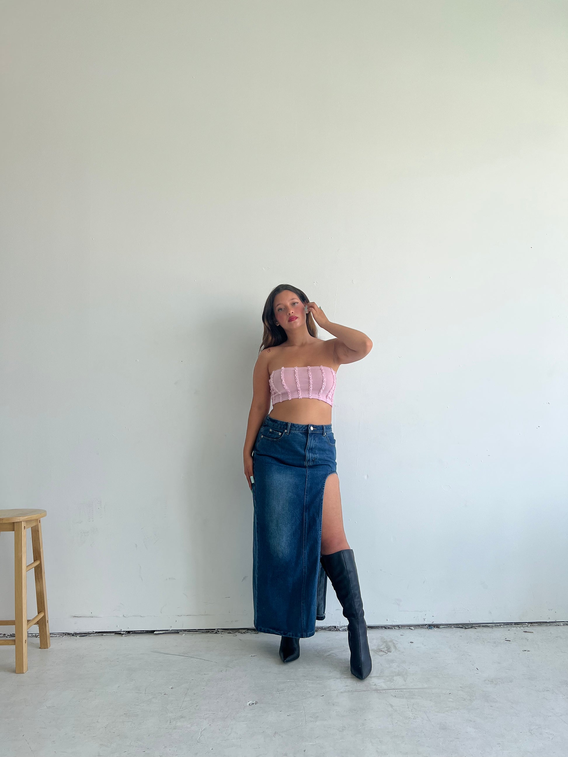 This denim skirt comes with a single leg slit, and is a basic everyone needs in their closet. Material is durable and it’s high quality.