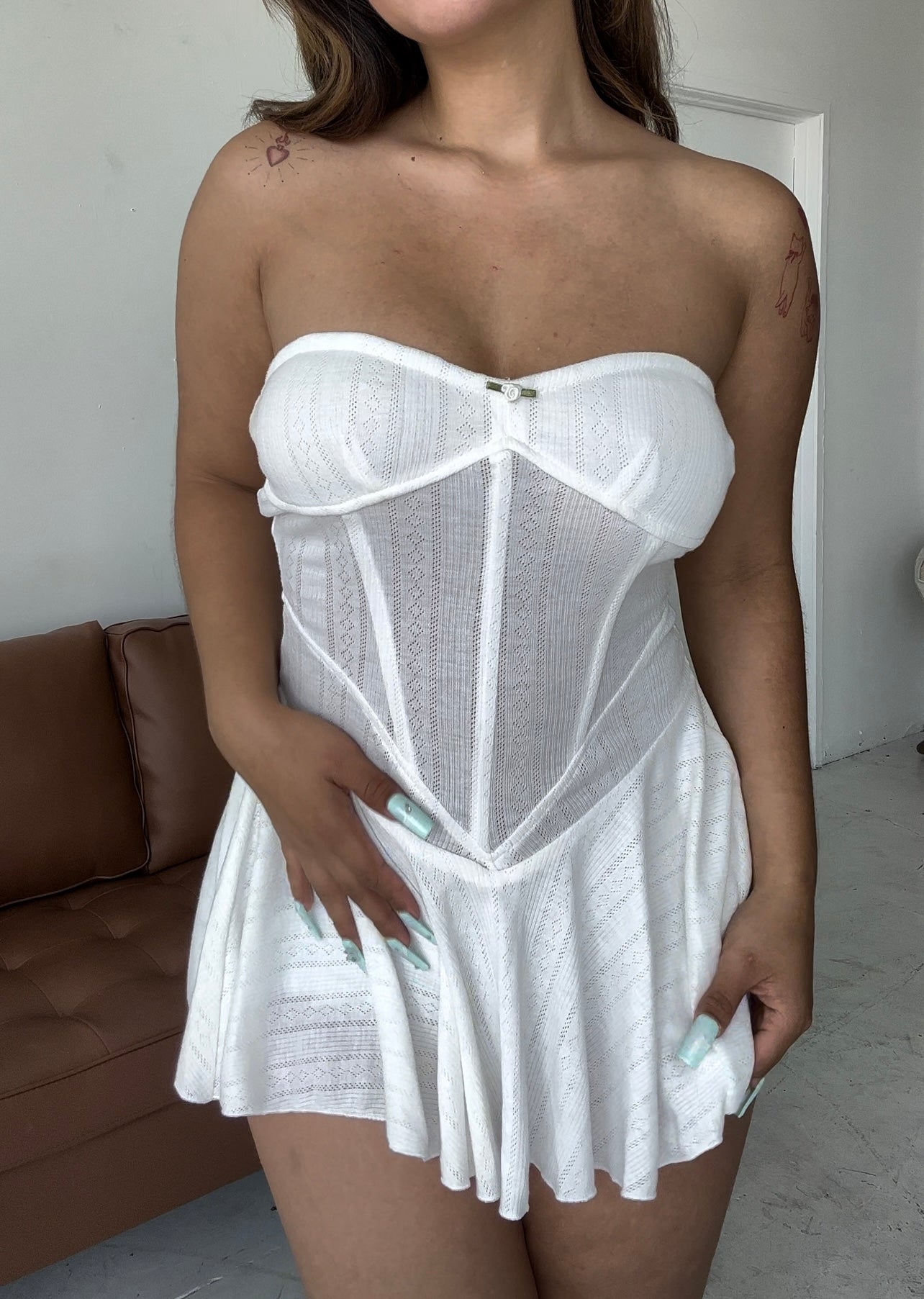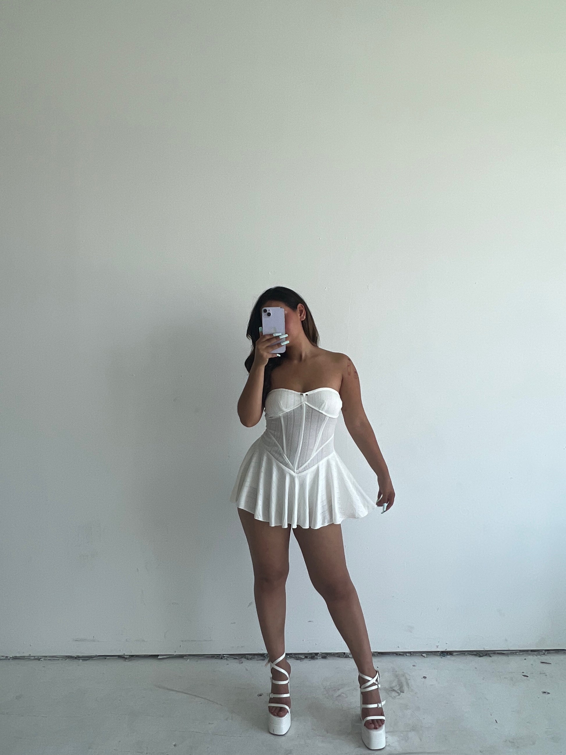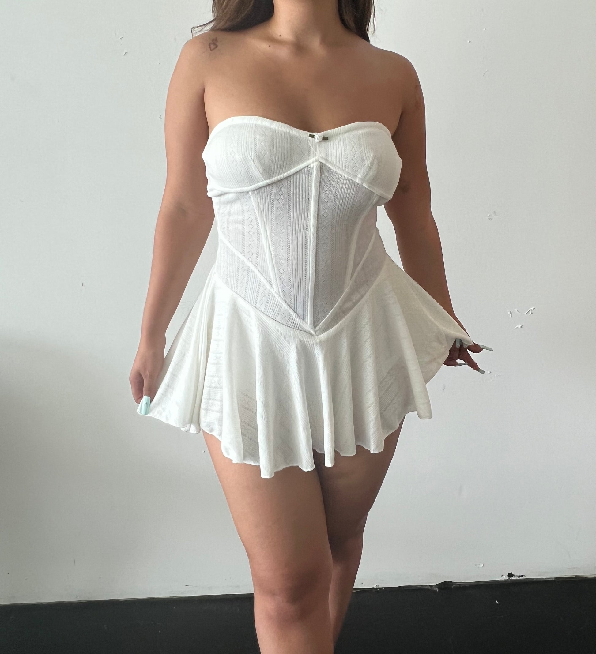 This Barbie inspired dress comes with rose coquette detailing and a corset structure. It has built in shorts and a flowy skirt. Material is cotton and soft to the touch. It’s a beautiful summer piece for your closet.