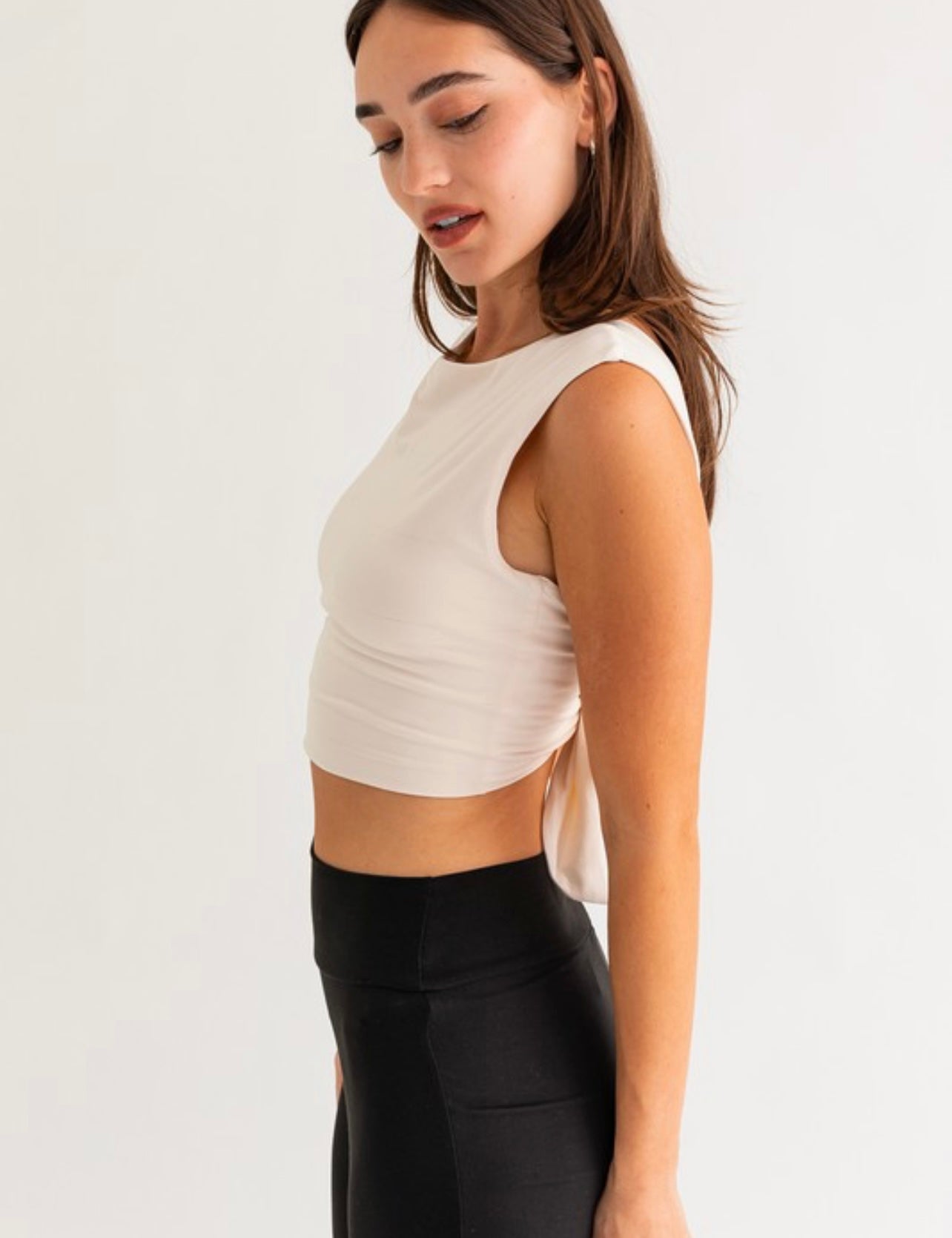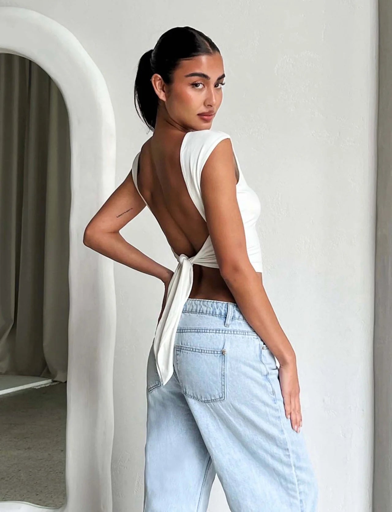 THIS BACKLESS TOP COMES WITH SOFT TO THE TOUCH MATERIAL, ITS DOUBLED LINED AND PERFECT FOR THE SUMMER/SPRING WEATHER. BACK TIE DETAILING AND YOU’RE ABLE TO ADJUST TO BUST SIZE.