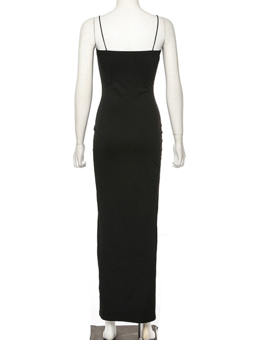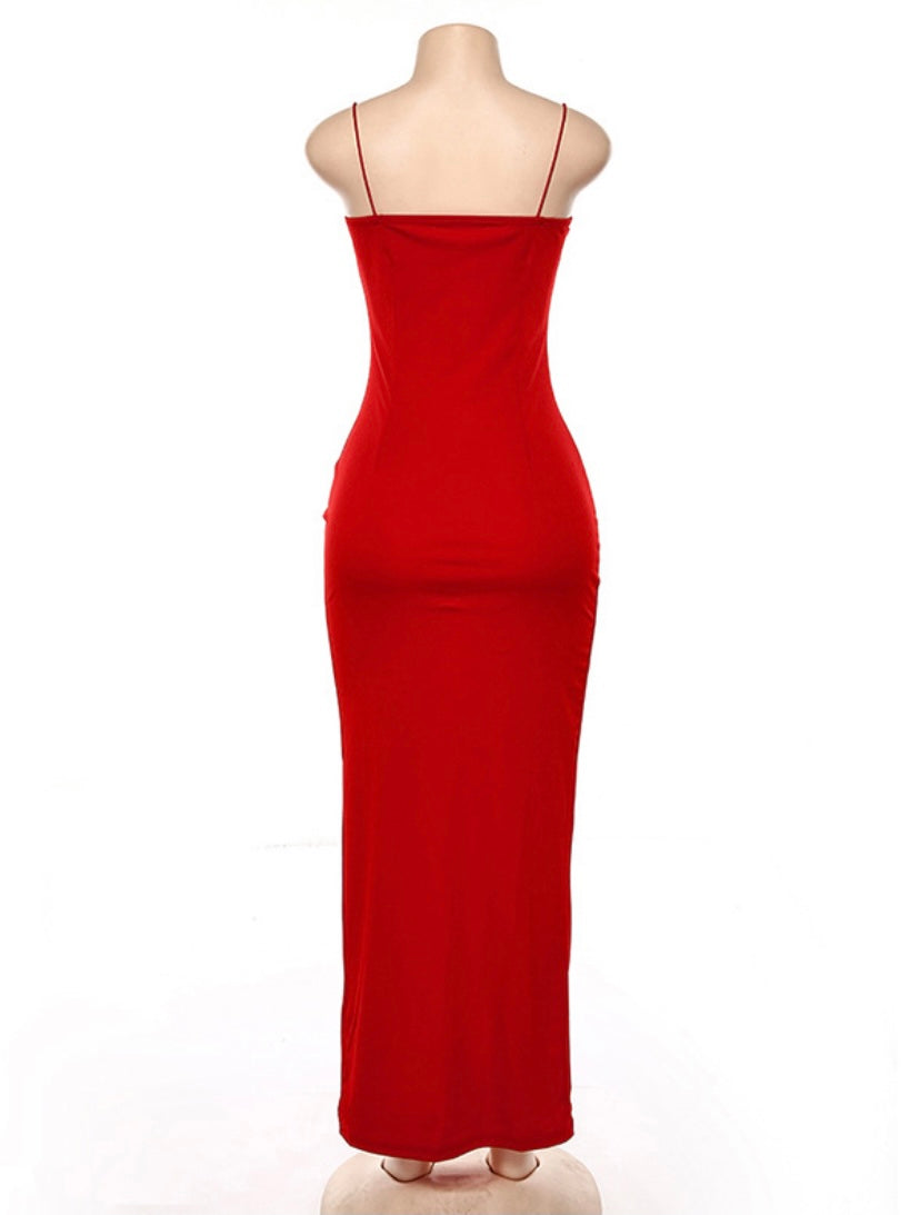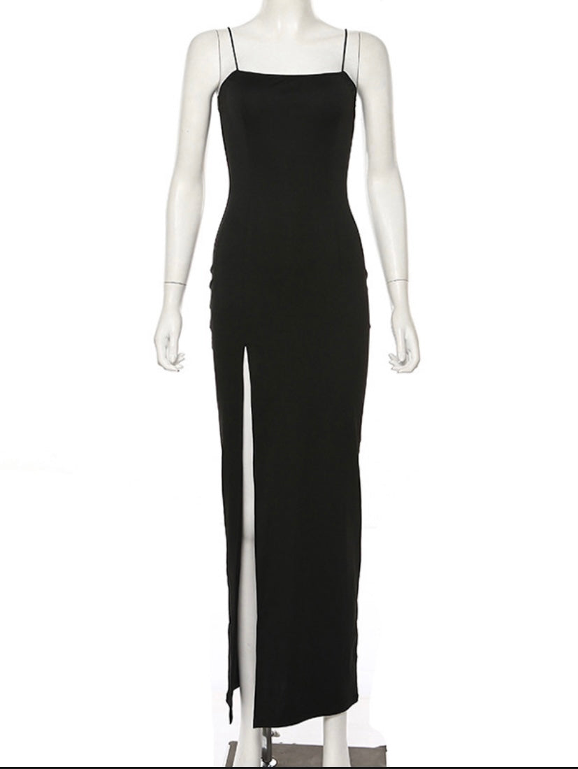 This sleeveless boat neck slip dress comes in two available colors, black and red. It comes with a leg slip detailing and the material is meant to hug your body. Its elegant and simple and can be dressed up or down. It has spaghetti straps and is meant to be on the body as a pullover. It is ankle length.